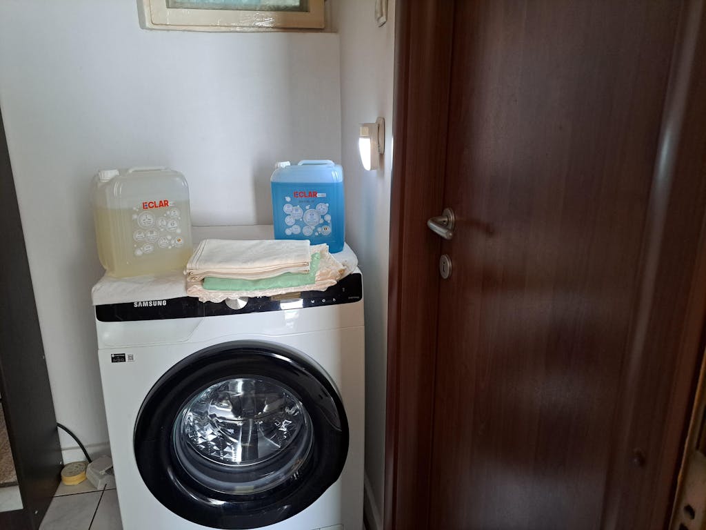 Igienizează în mod natural. Prin acest proces trec atât hainele curățate cu detergentul nostru pe bază de bicarbonat, cât și mașina de spălat, ale cărei componente sunt acum protejate împotriva depunerilor.